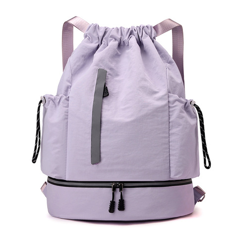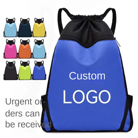 Custom Logo Print Lightweight Fitness Basketball Drawstring Backpack Large Zipper Waterproof Soft Polyester String Gym Backpack