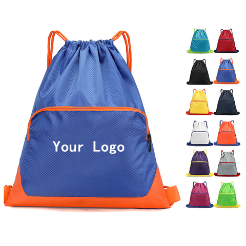 개인화 된 로고 피트니스 스포츠 하이킹 졸라매는 끈 배낭 가방 지퍼 포켓 외부 및 내부 방수 패션 폴리 에스테르