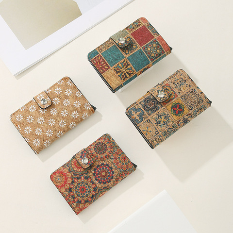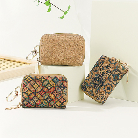 Unisex portafoglio corto in sughero di alta qualità con chiusura a cerniera porta-carta con Logo stampato Logo portachiavi auricolare borsa Unisex Logo