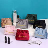 Embroidery Drawstring Velvet Cosmetic Bag Private Label Custom Makeup Bag & Cases Pouch Set Make up Bags With Personal Logo