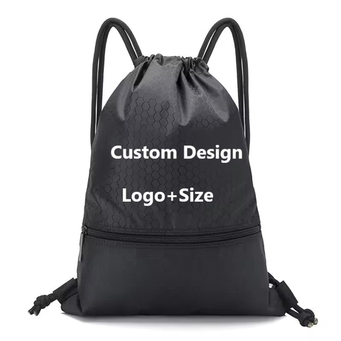 Unisex Custom Logo Gym Sports Backpack Promotional Plain Polyester Nylon Carry Drawstring Bag Waterproof Fitness Outdoor