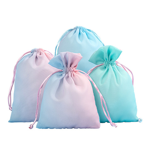 Custom Multicolor Satin Jewelry Drawstring Bag Dustproof Storage Bag for Wig Piece and Silk Bundle for Factory Gifts