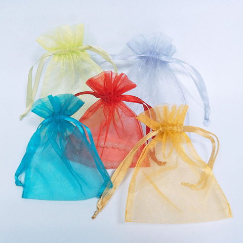 Bolsa de hilo de regalo, bolsa de almacenamiento de cosméticos, bolso de joyería de Organza multicolor, bolsillo con cordón personalizado, venta al por mayor