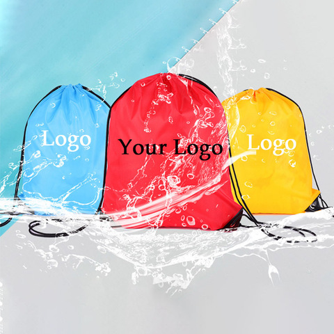 กระเป๋าช้อปปิ้งที่กำหนดเองทนทานราคาถูก210D ไนลอนดึงสตริงโลโก้ที่กำหนดเอง Drawstring กระเป๋าเป้สะพายหลังกีฬา Drawstring