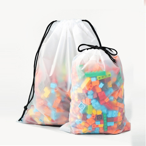 กระเป๋ากันน้ำแบบมีเชือกรูดพกพาได้ง่ายกระเป๋าใส่รองเท้าผ้าใบกระเป๋าโท้ทพลาสติก PE