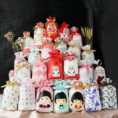 สุขสันต์วันคริสต์มาสปาร์ตี้วันเกิดกระเป๋าขนมสำหรับเด็ก50ชิ้น/แพ็คถุงใส่คุกกี้แบบผูกเชือก