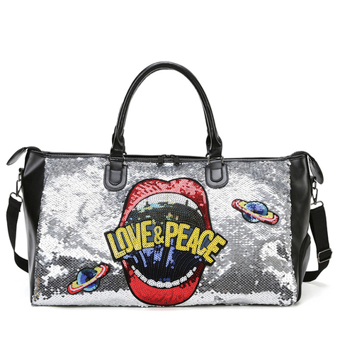 ยอดนิยมโลโก้ที่กำหนดเองขนาดใหญ่ถุงแบบพกพาUnisexแฟชั่นเลื่อมสีชมพูSpend The Night Duffelกระเป๋า