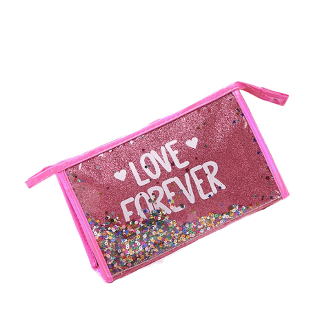 กระเป๋าใส่เครื่องสำอางสุดหรูสำหรับผู้หญิงกระเป๋าแปรงแต่งหน้ามีซิปปิดสีประกายระยิบระยับทำจากวัสดุ PU